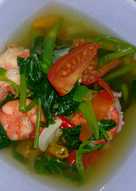 Mee kuning susu cair pes tomyam lengkuas serai cili ladi limau nipis daun ketumbar garam sedikit gula daun limau purut sayur pilihan selamat.