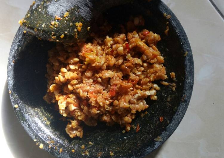 Tempe tersebut kemudian digoreng dan setelah masak disajikan dengan sambal.