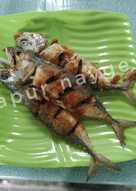 Goreng ikan sampai kedua sisinya kering/matang dan berwarna kuning keemasan. Aji furai (ikan makerel goreng dengan tepung panir). Perapkan ikan kembung bersama garam dan serbuk kunyit secukupnya.