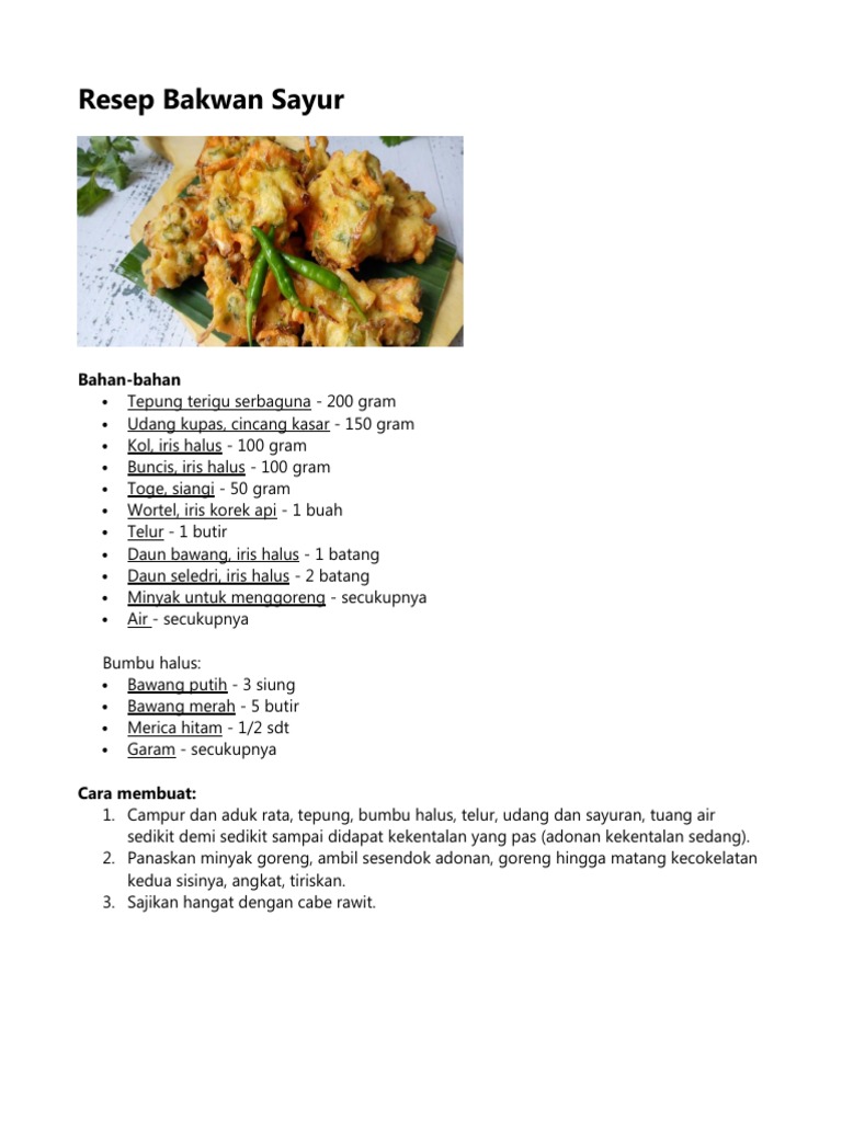 Resep bakwan sayur tanpa bumbu uleg. Detikfood punya rekomendasi resep ikan kalau biasanya kakap goreng saus lada hitam dipesan di restoran, sesekali coba buat sendiri. Resep bakwan sayur tanpa bumbu uleg. Cah buncis udang tempe maknyus.